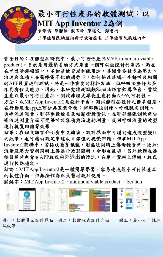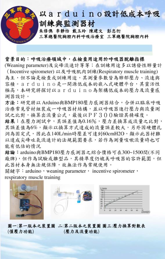 海報兩篇為軟體與硬體的研究展示,為2022年呼吸治療全國聯合會研討會海報