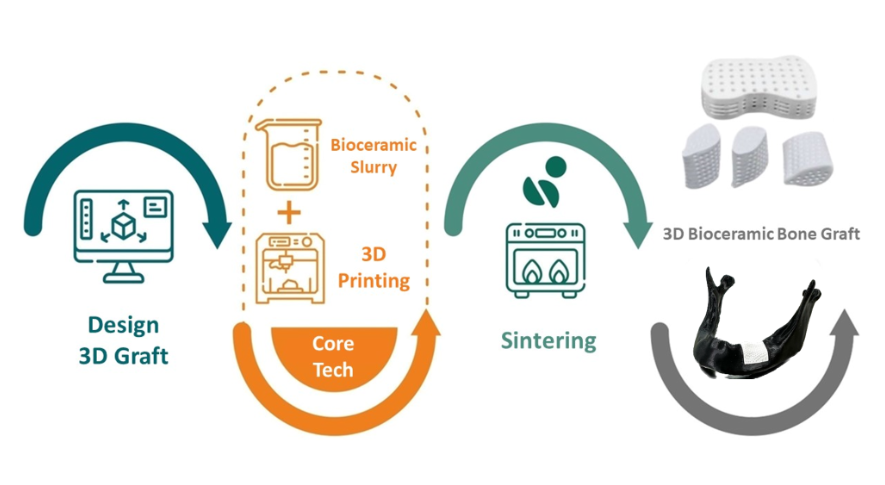 積層製造3D生物陶瓷骨移植替代物製程流程圖