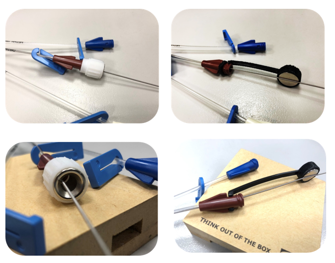 42防導絲滯留之特殊導管接頭設計中央研究院陳常善博士後研究員發明人:陳常善領域:醫療器材適應症:置入靜脈導管造成之傷害研發階段:醫材雛型開發Prototype development摘要:臨床滯留管路,中央靜脈導管(CVC)、周邊置入中心靜脈導管(PICC)的放置過程中,可能因狀況緊急或人為疏失導致金屬導絲滯留體內的狀況發生,並因此對患者造成嚴重的傷害。本專案在接頭的部分設計特殊構造,協助穩定導絲避免導絲滑入體內,以及增加示警作用提醒操作者移除導絲。本計畫已成功完成工業製圖及3D列印試製測試,並已開模進行塑膠射出試製,完成功能驗證。專利佈局則已提送台灣專利申請,並準備提送美國專利申請中。本計畫目前以授權專利為目標,並保持開放的心態將此案背後所應用之創新醫材設計結構化流程,應用於其他合作關係。